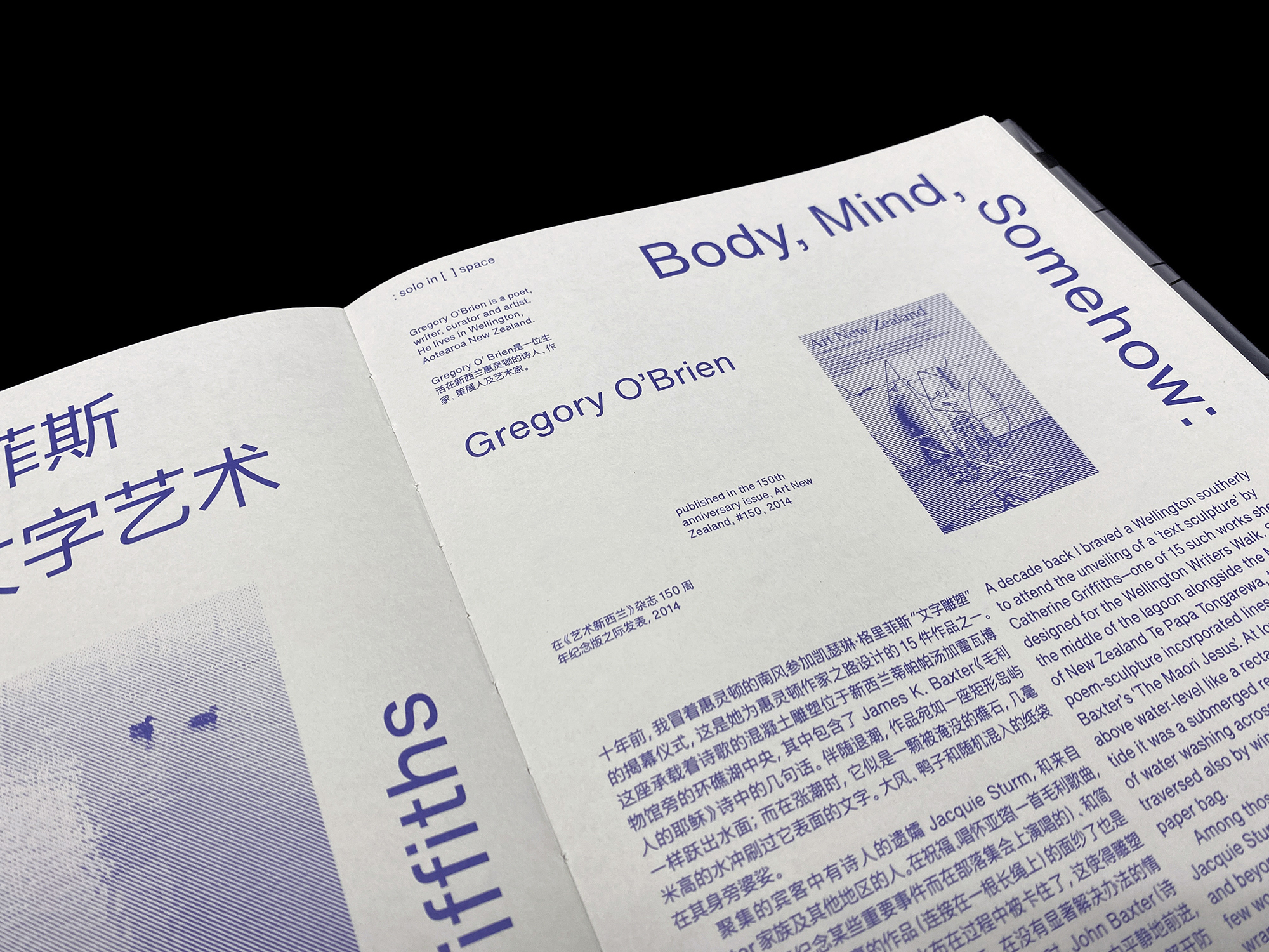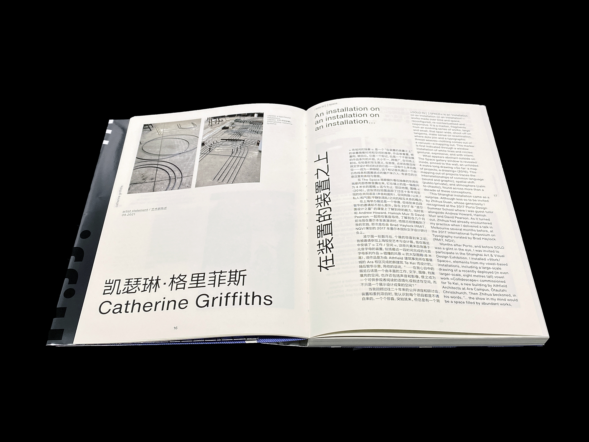 A documentation of »catherine griffiths : SOLO IN [ ] SPACE«, a survey of selected works exhibited at The Space Gallery, Shanghai, 2019. Published on the two-year anniversary of the exhibition, and launched at the 2021 UNFOLD Shanghai Art Book Fair with artist talk hosted by Bananafish Books.