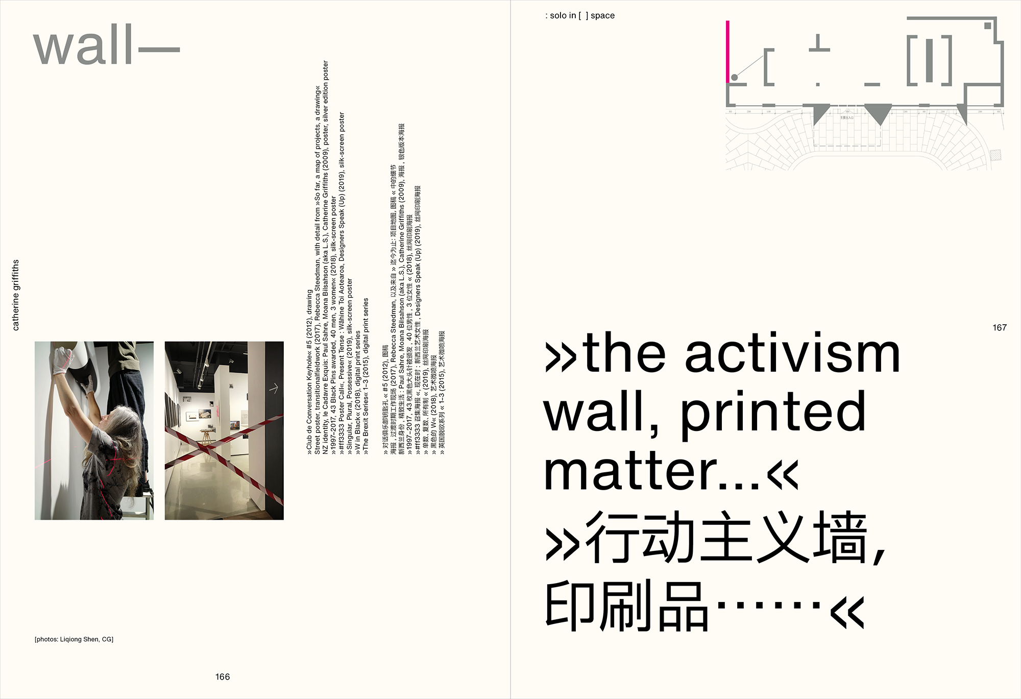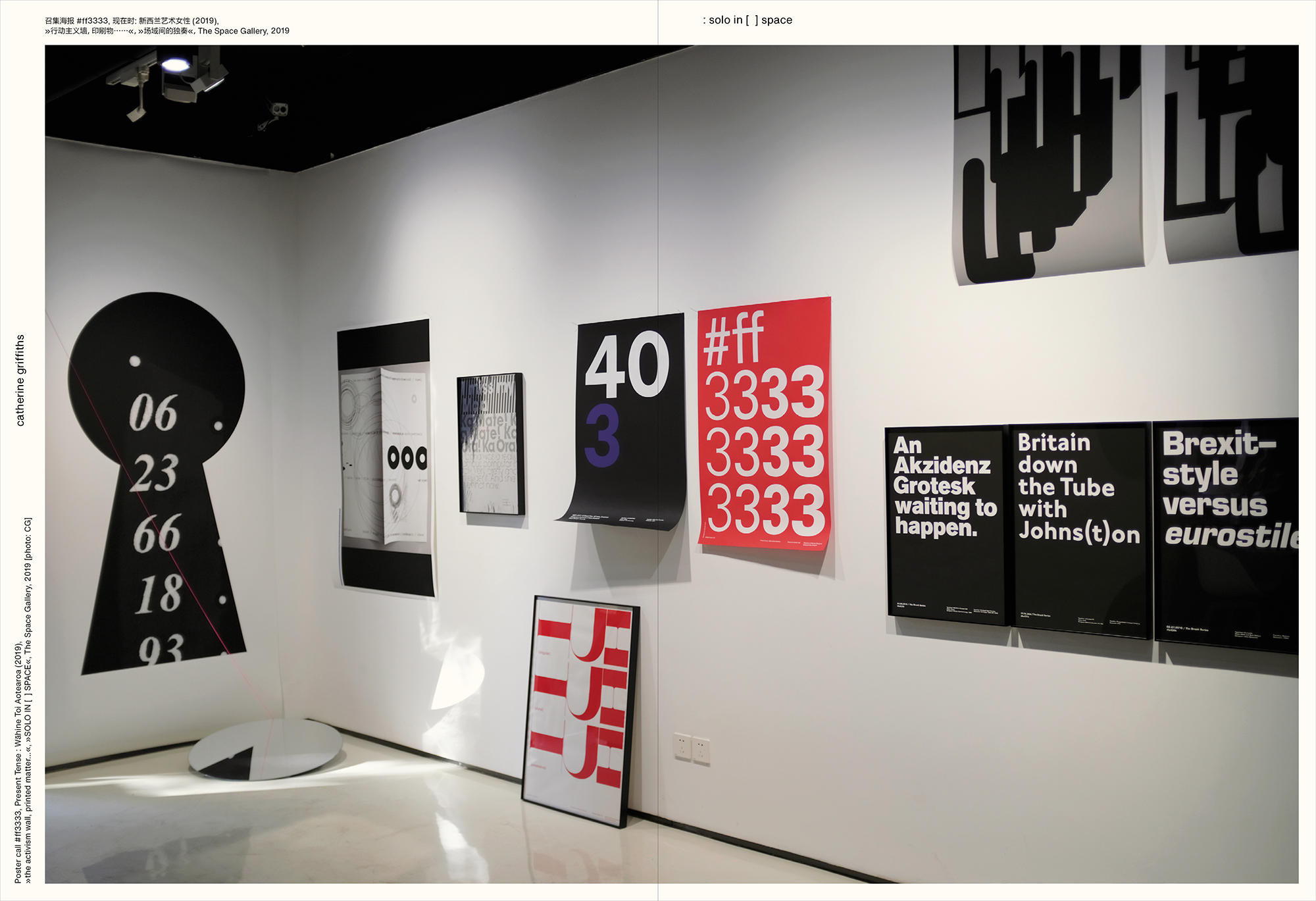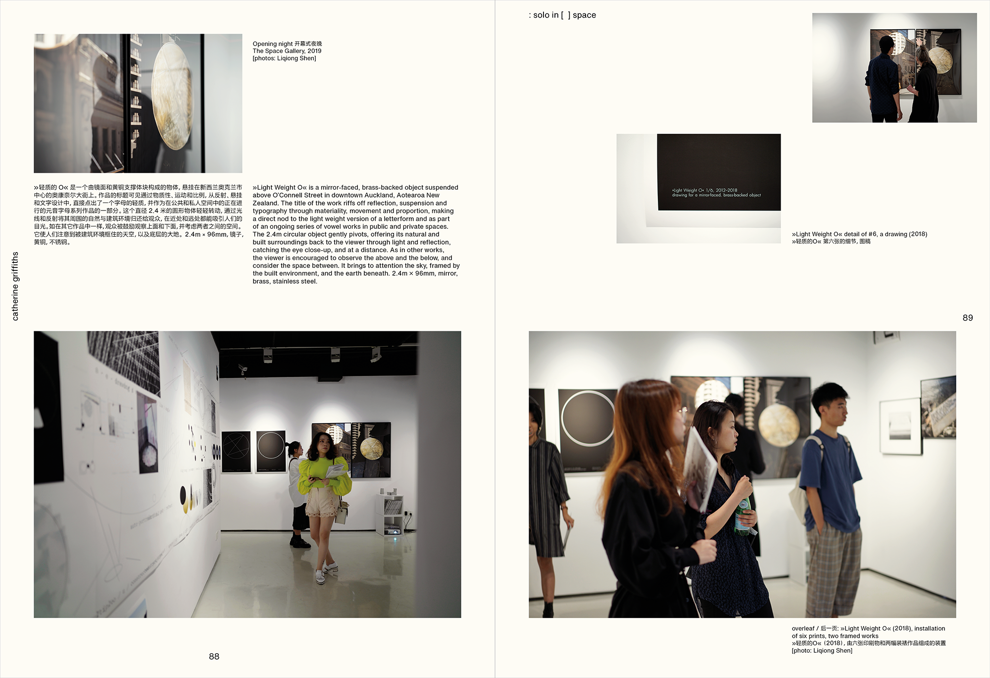 A documentation of »catherine griffiths : SOLO IN [ ] SPACE«, a survey of selected works exhibited at The Space Gallery, Shanghai, 2019.