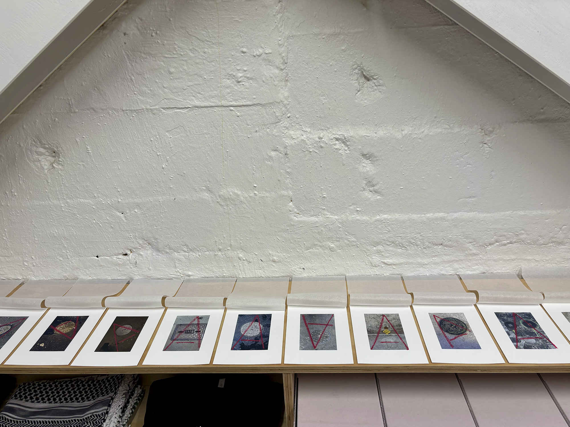 »GAZ/A« (2025), archival prints, oil pastel, Hahnemühle Photo Rag