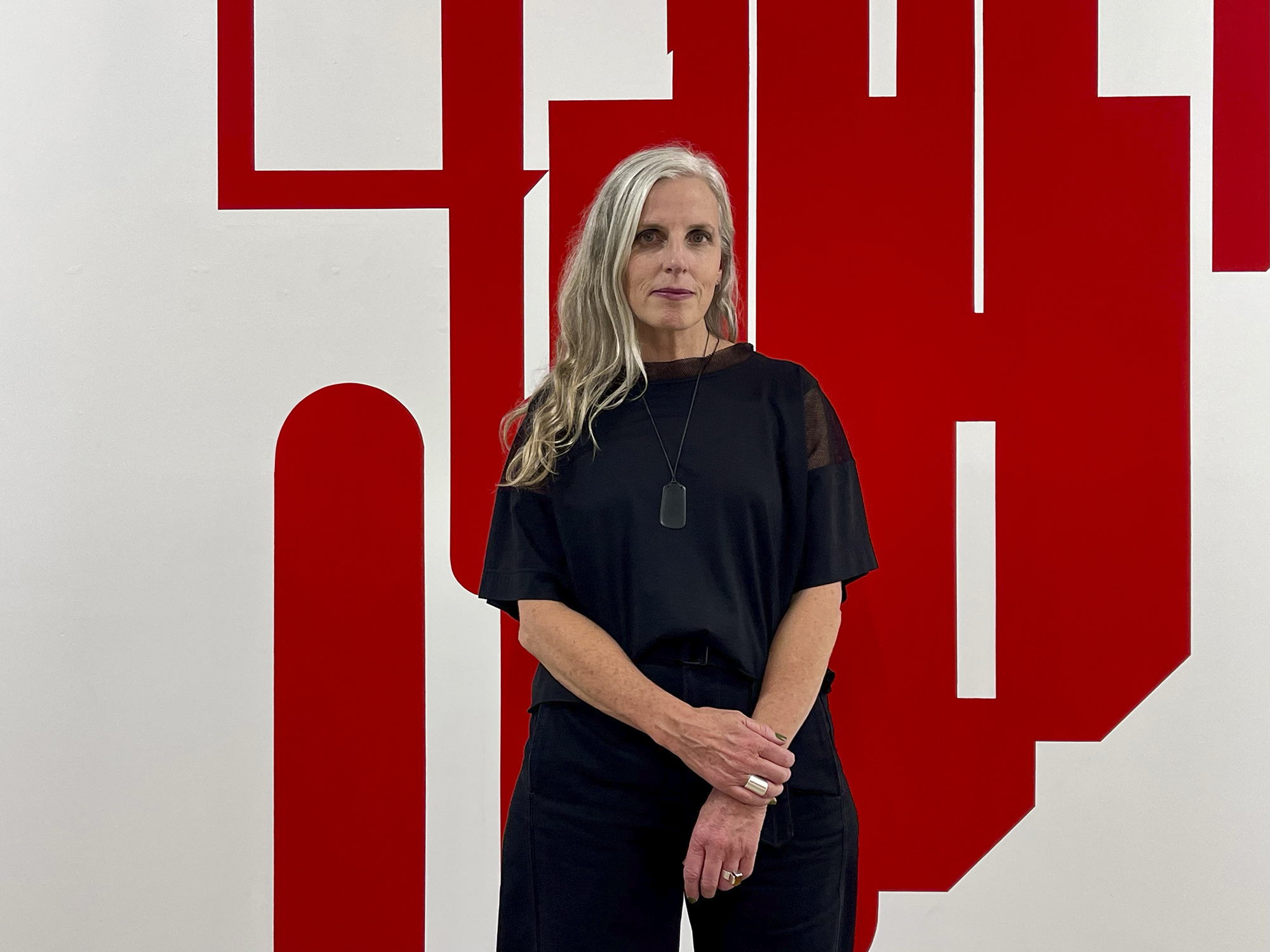 In »Iterations/Alterations«, Catherine Griffiths expands upon her past work, »W in Black« (2017) — two algorithmic compositions, five ‘W’s made in support of the Women’s March protesting the inauguration of the US president — with »W in Blood« (2025), in response to the blood on the hands of world leaders complicit in the Zionist project. The artist refers to this iteration of the works at Enjoy as a ‘diptych with void’, referencing the walls standing adjacent to each other with the open space between them acting as a void — a place for visitors to pause for thought. Griffiths interrogates her own priorities and perspectives.