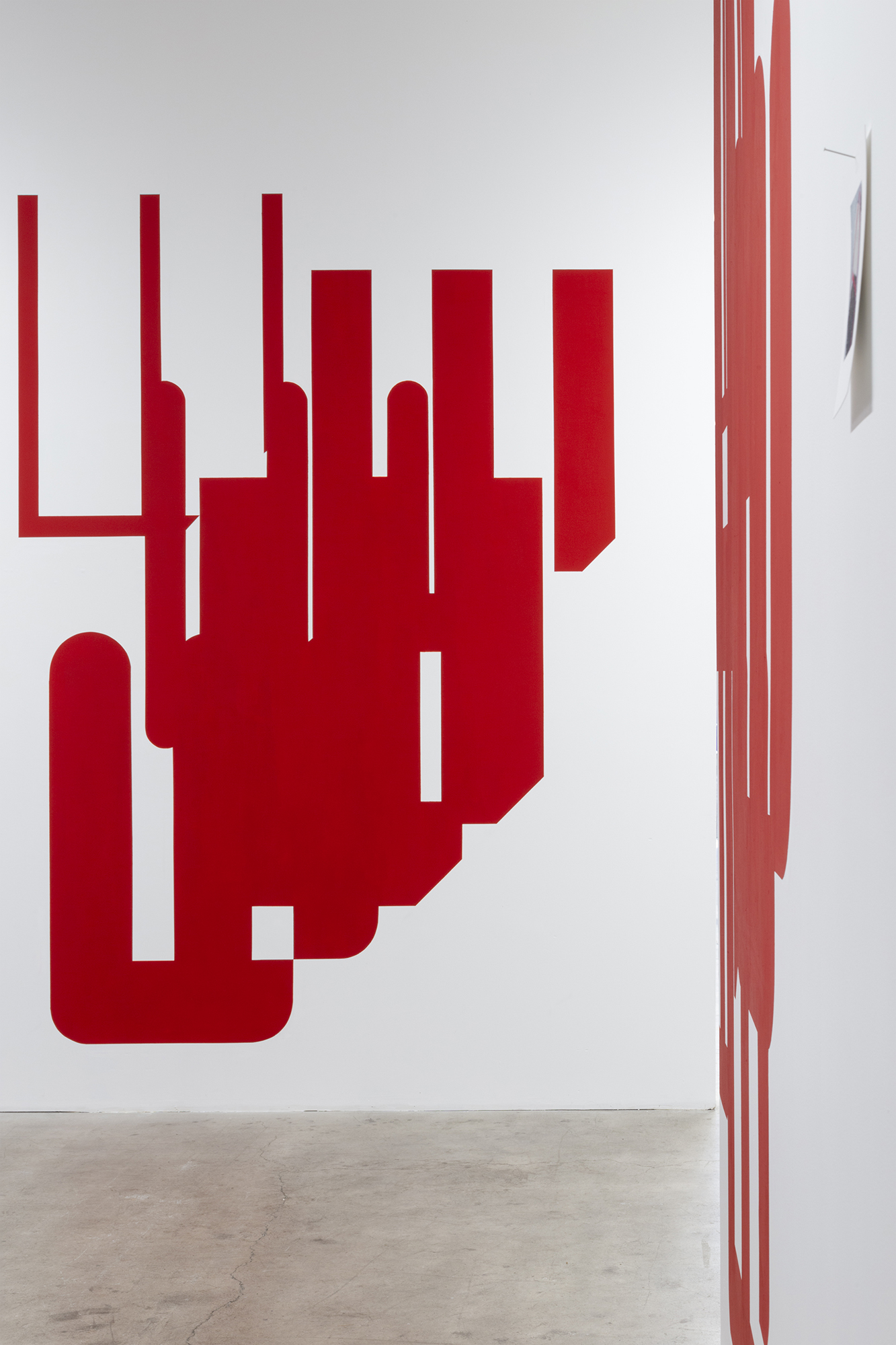 »W in Blood« [diptych with void] (2025), wall painting, acrylic